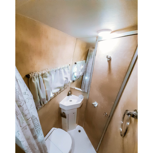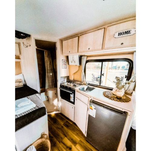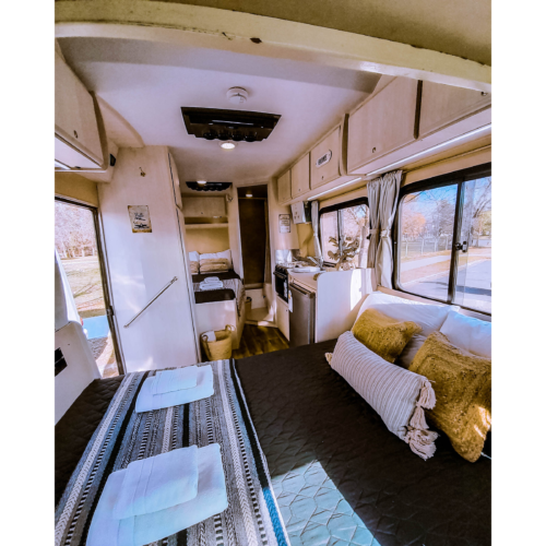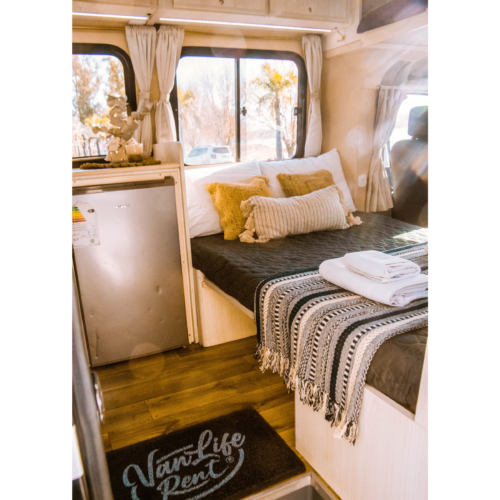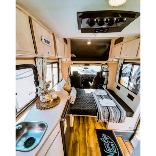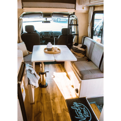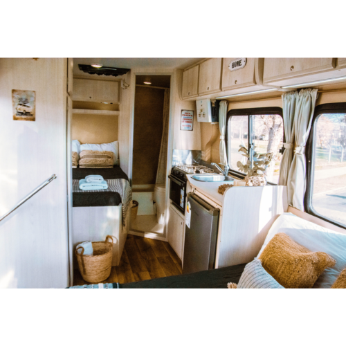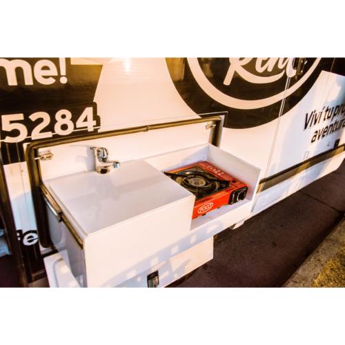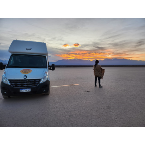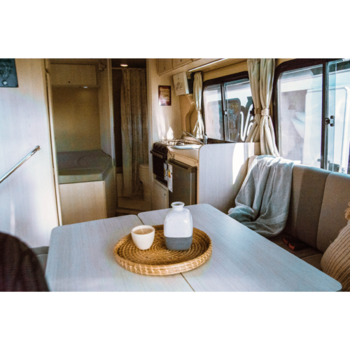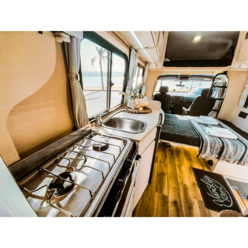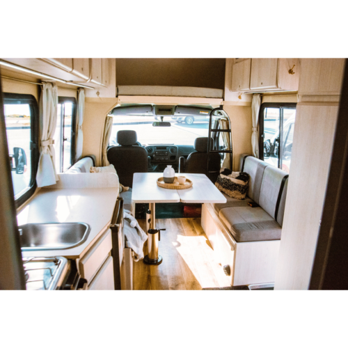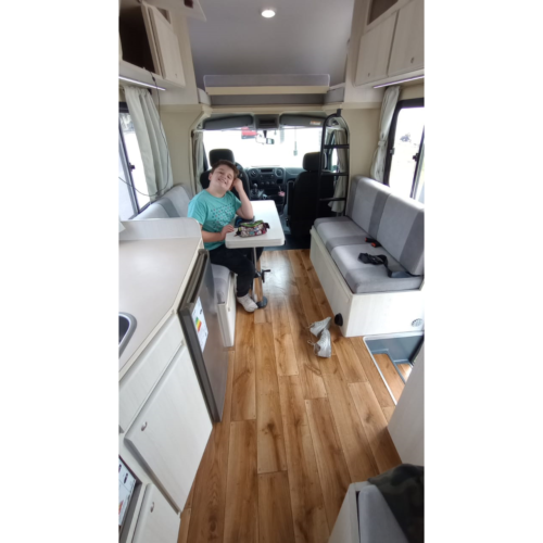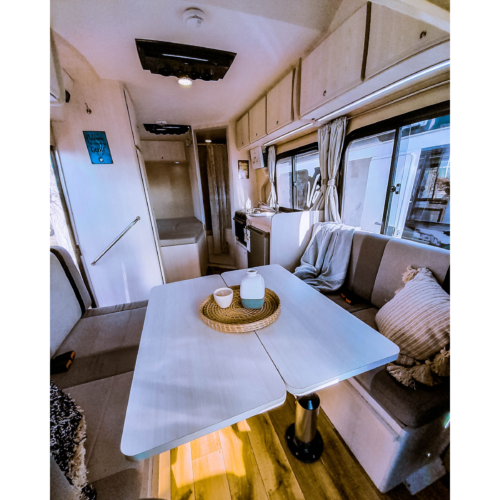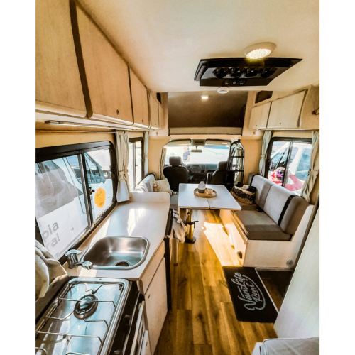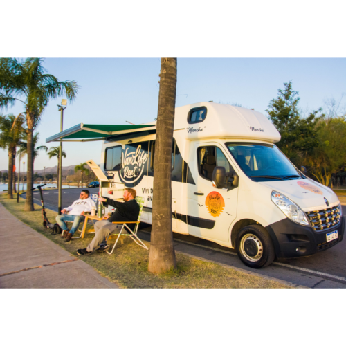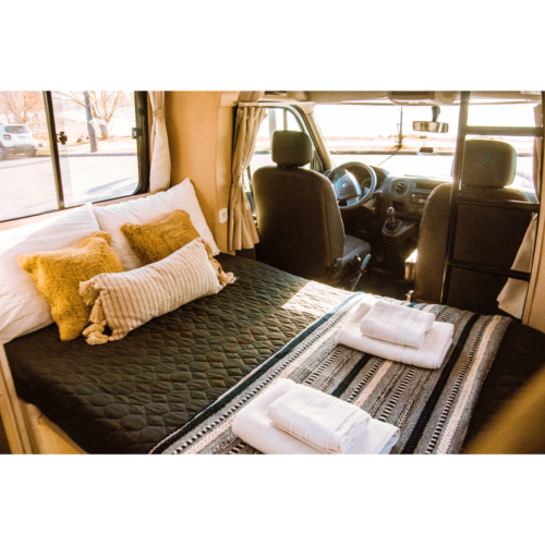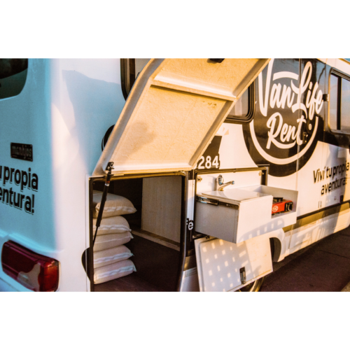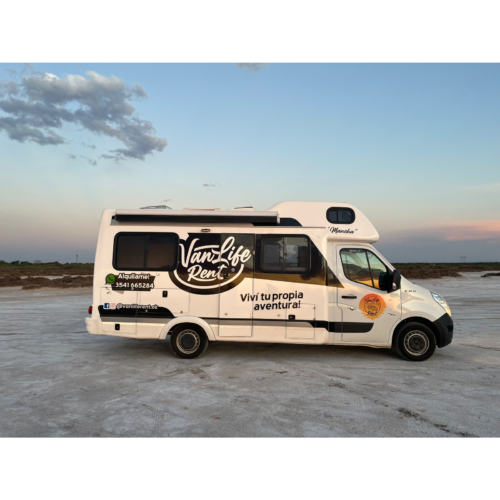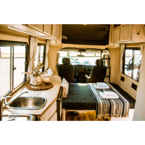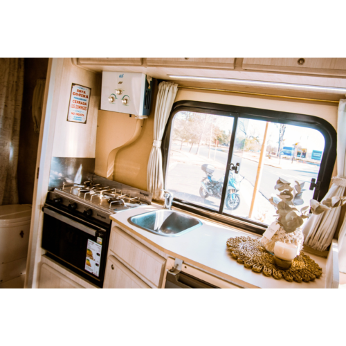 Motorhome ideal para viajes de largas distancias con capacidad máxima de 4 pasajeros (2 adultos y 2 niños).